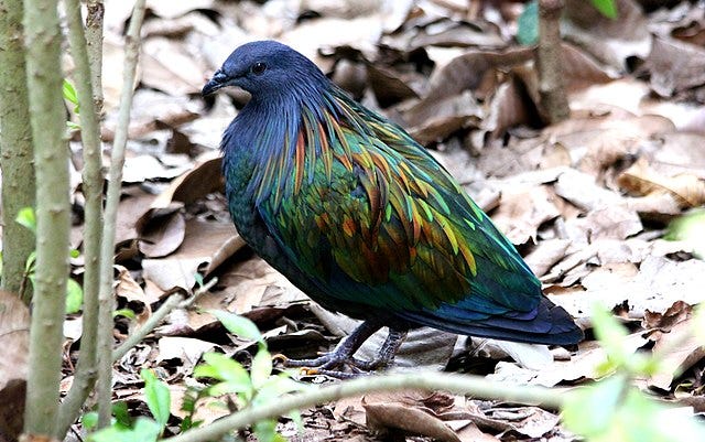 5. The reason for dodos’ unusual appearance compared to their relatives is that they evolved in isolation on islands with no predators and plentiful food. Over the millennia, they grew bigger and heavier, while their wings shrank and fell out of use. Their closest living relative is thought to be the Nicobar Pigeon which, unexpectedly, looks like this: